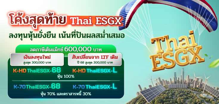 โค้งสุดท้าย! บลจ.กสิกรไทย ชวนลงทุน K-HDThaiESGX และ K-70ThaiESGX มองเป็นจังหวะเก็บหุ้นไทย SETHD ปันผลสูง