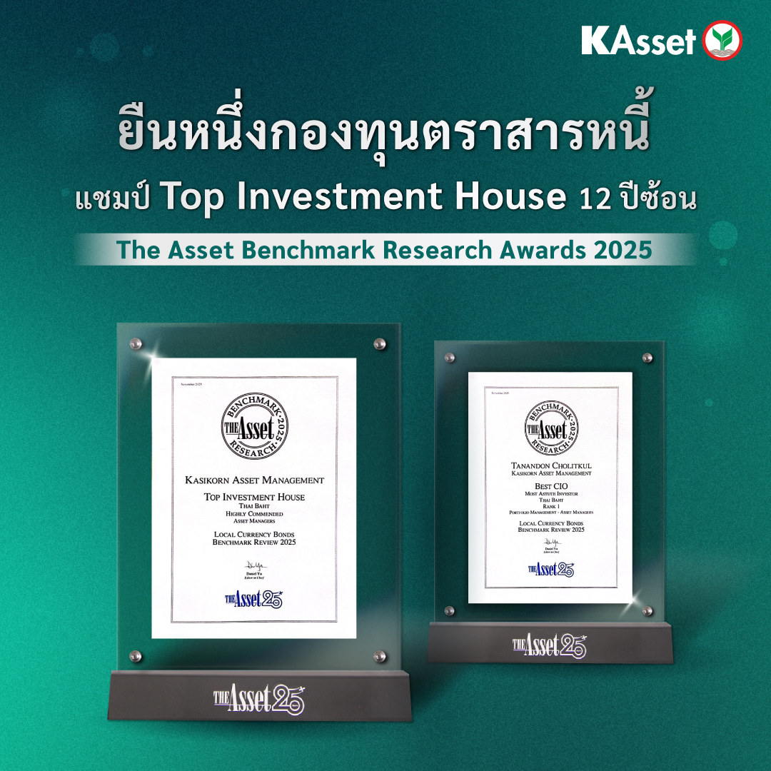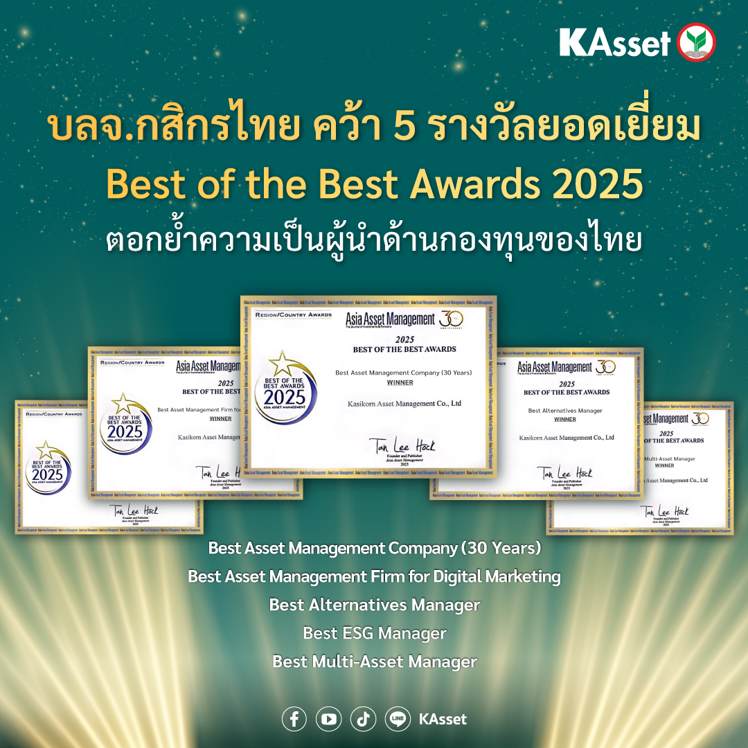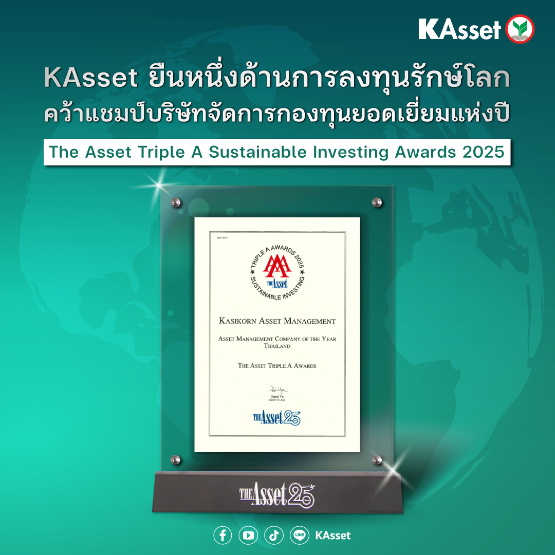 ความสำเร็จที่ผ่านมาเป็นเครื่องพิสูจน์ถึงความมุ่งมั่นในการทำงานร่วมกันของทีม และความไว้วางใจจากผู้ลงทุน ซึ่งเป็นแรงผลักดันสำคัญที่ทำให้ KAsset ก้าวสู่การเป็นผู้นำในอุตสาหกรรมกองทุนรวม และดำเนินธุรกิจในโลกยุคใหม่อย่างยั่งยืน