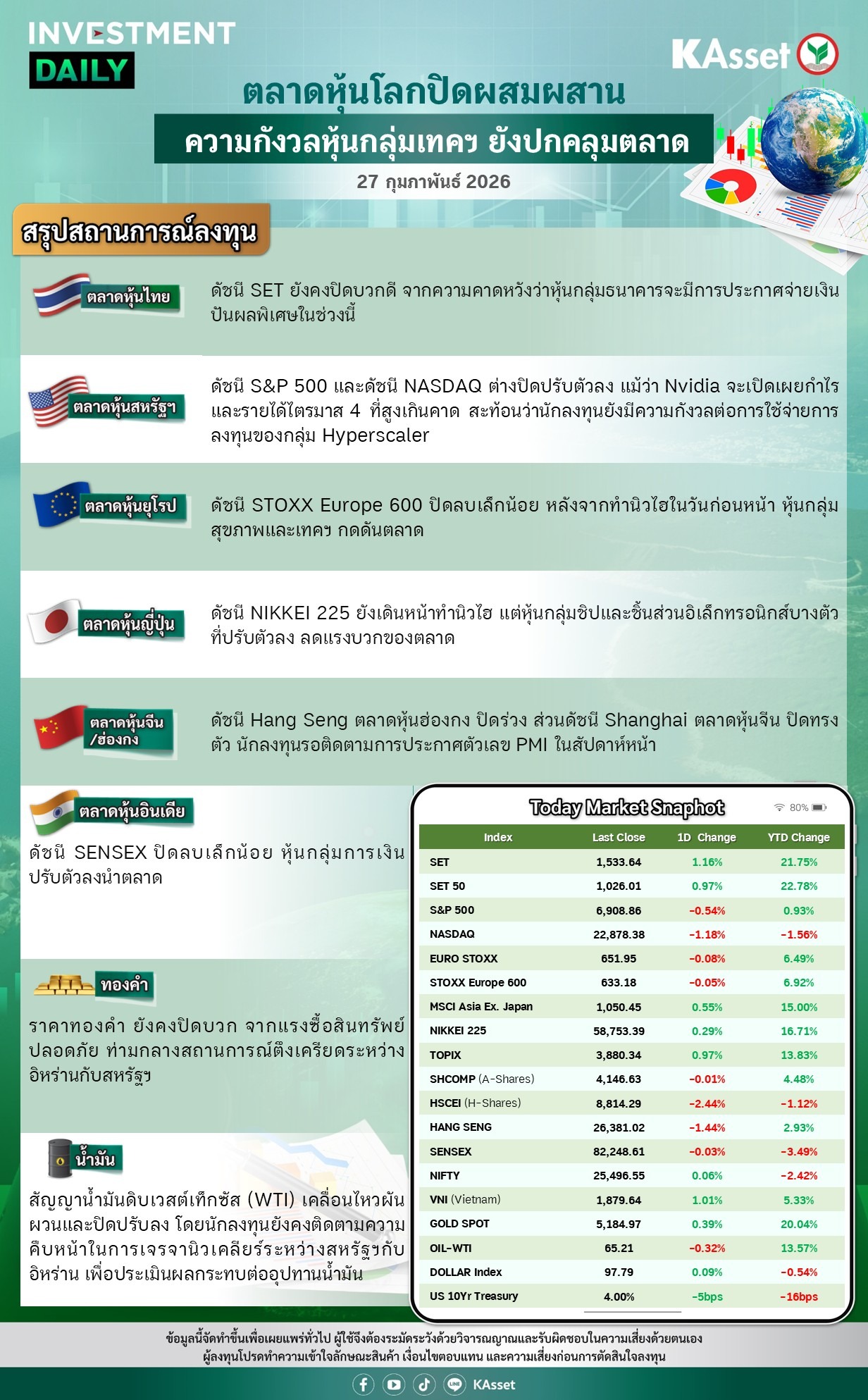 การลงทุนย่อมมีความเสี่ยง ผู้ลงทุนควรศึกษาข้อมูลก่อนตัดสินใจลงทุน