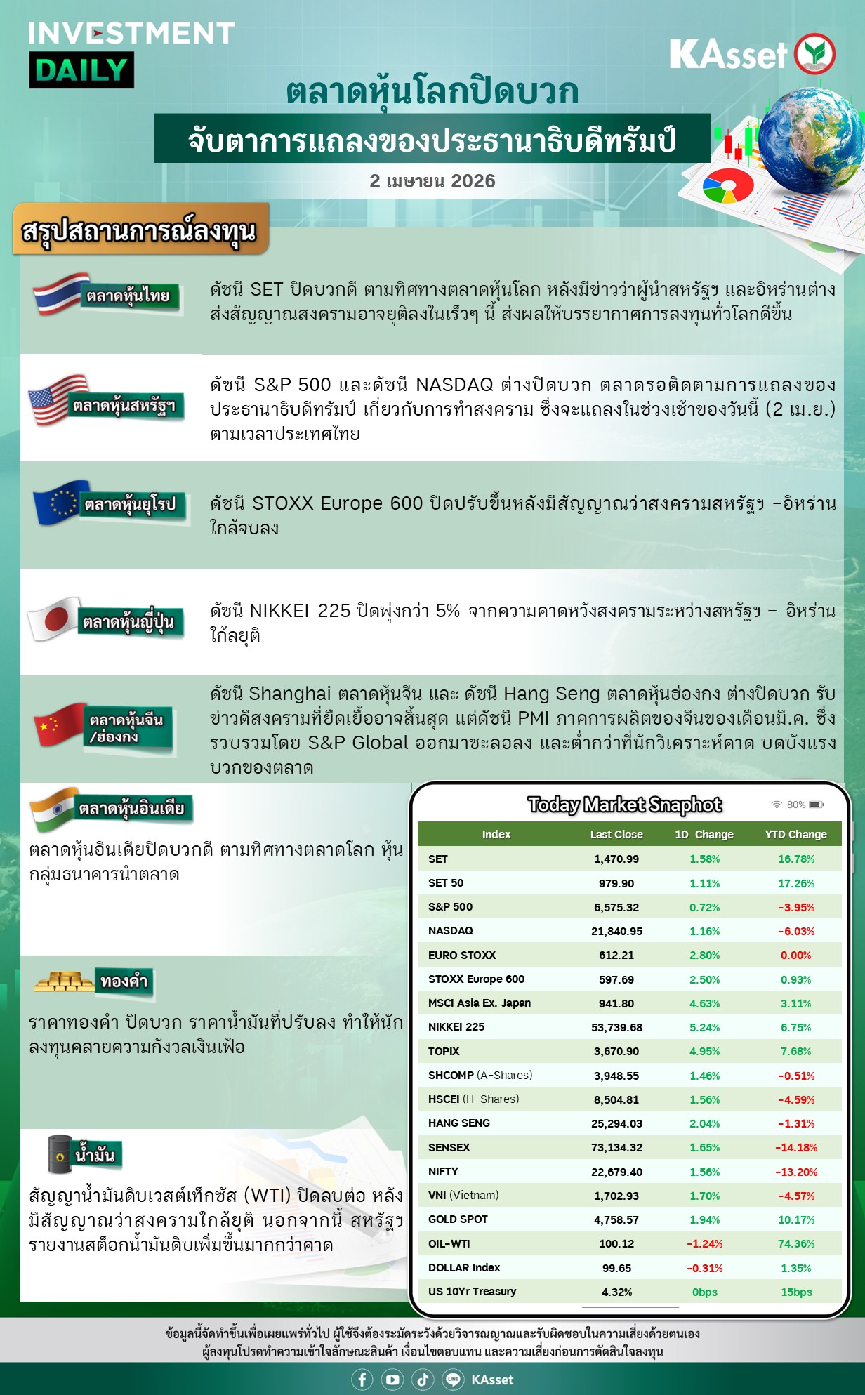 การลงทุนในหน่วยลงทุนมิใช่การฝากเงิน และมีความเสี่ยงของการลงทุน ผู้ถือหน่วยลงทุนอาจได้รับเงินลงทุนคืนมากกว่าหรือน้อยกว่าเงินลงทุนเริ่มแรกก็ได้ และอาจไม่ได้รับชำระเงินค่าขายคืนหน่วยลงทุนภายในระยะเวลาที่กำหนด หรืออาจไม่สามารถขายคืนหน่วยลงทุนได้ (กรณีกองทุนเปิด) ตามที่ได้มีคำสั่งไว้