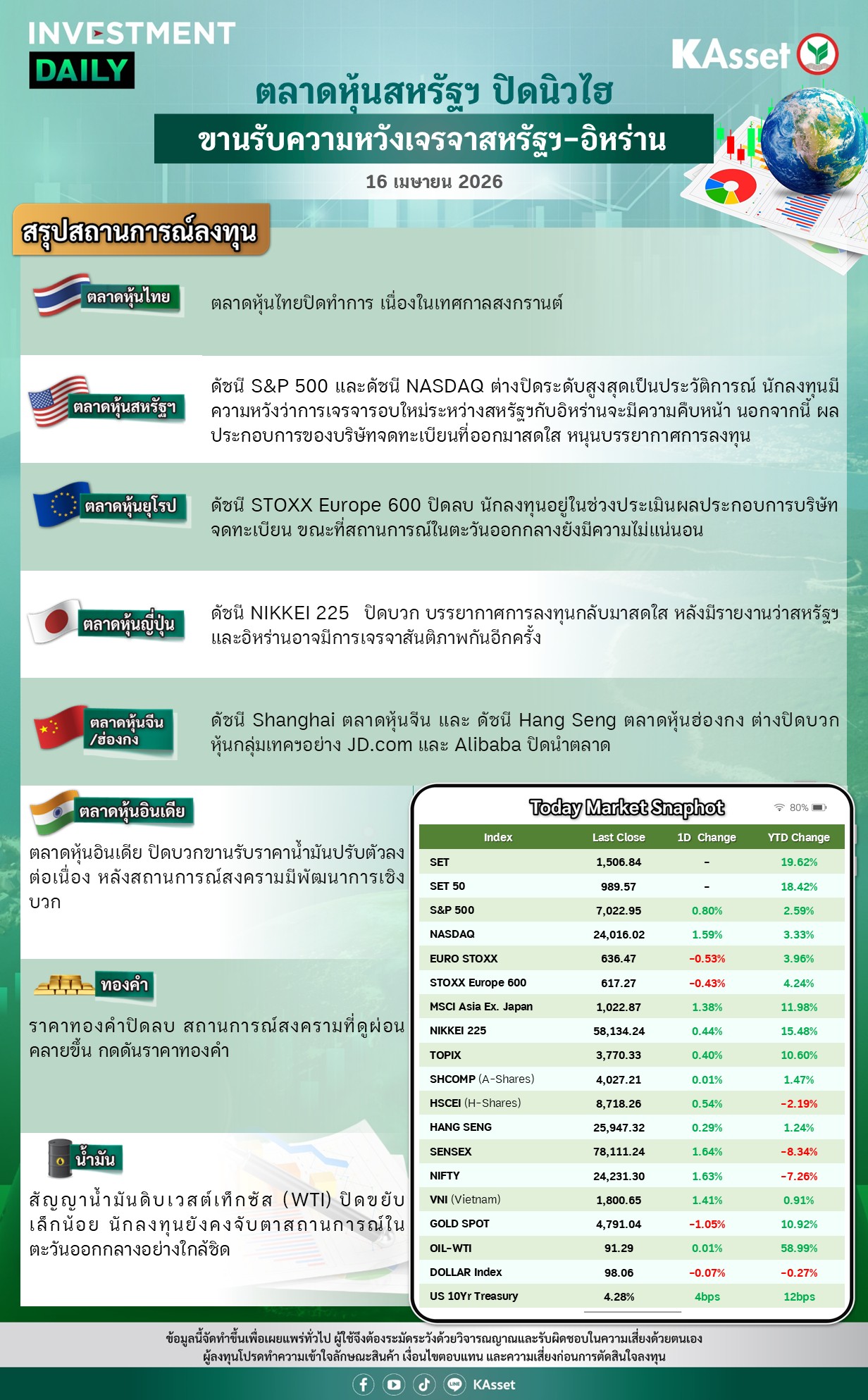 การลงทุนในหน่วยลงทุนมิใช่การฝากเงิน และมีความเสี่ยงของการลงทุน ผู้ถือหน่วยลงทุนอาจได้รับเงินลงทุนคืนมากกว่าหรือน้อยกว่าเงินลงทุนเริ่มแรกก็ได้ และอาจไม่ได้รับชำระเงินค่าขายคืนหน่วยลงทุนภายในระยะเวลาที่กำหนด หรืออาจไม่สามารถขายคืนหน่วยลงทุนได้ (กรณีกองทุนเปิด) ตามที่ได้มีคำสั่งไว้